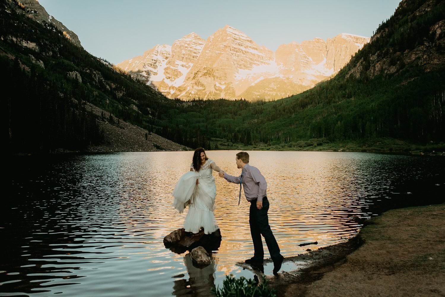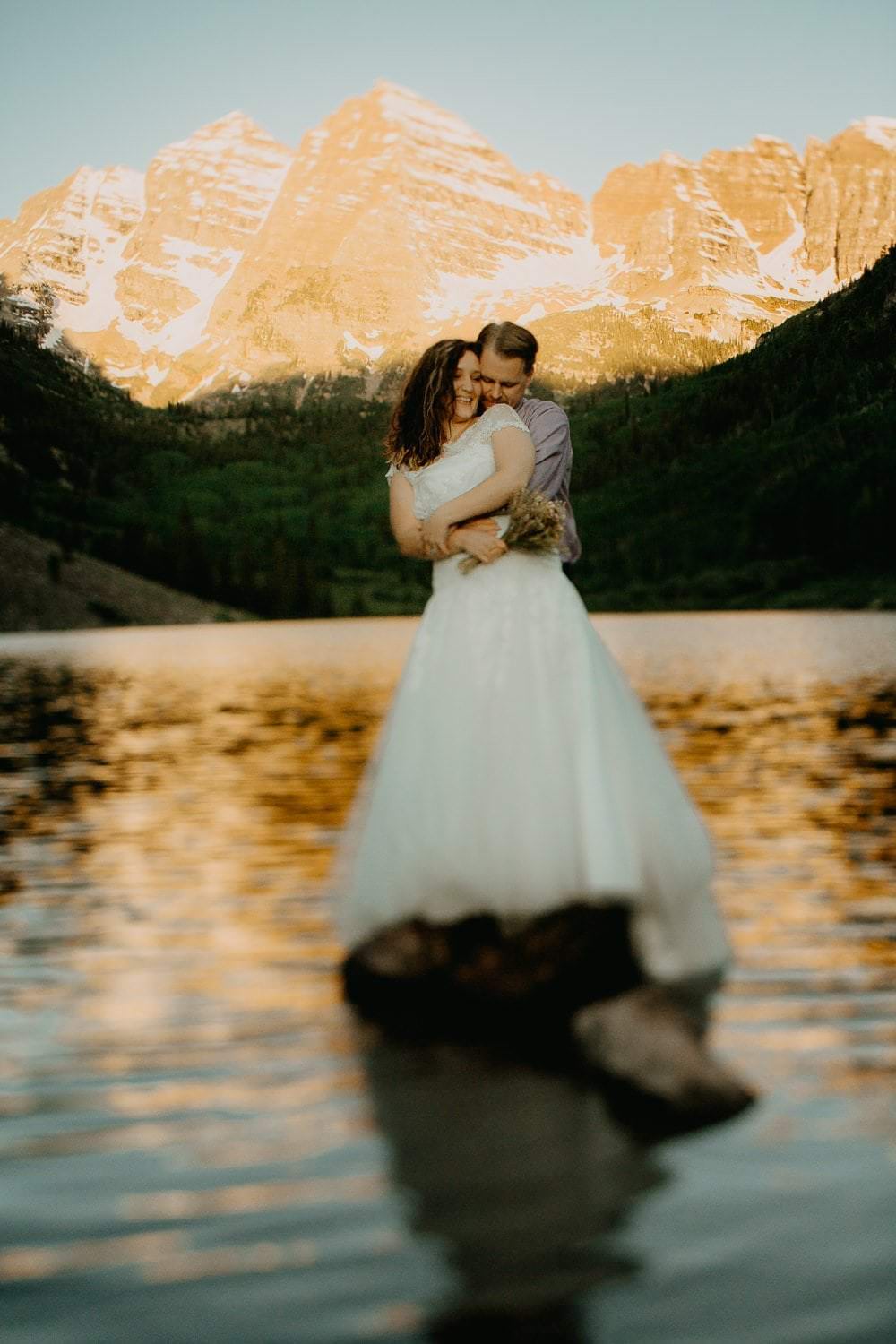 If the awe-inspiring backdrop of the Rocky Mountains, Aspen Colorado Hiking Elopement Adventure surrounded by reflective lake and two giant snow-striped mountaintops, named Maroon Peak and North Maroon Peak during Aspen Colorado Hiking Elopement Adventure anchor didn’t give it away, I’m telling you now.